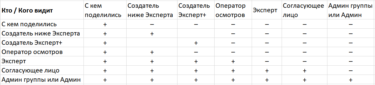 Доступ к просмотру осмотров, выполненных другими пользователями - только в веб-интерфейсе |