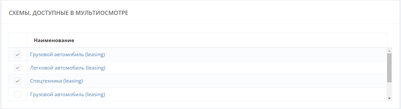 | Активность | Установленный флаг означает, что схема активна, её можно использовать для создания осмотров, в том числе включать в состав Мультиосмотра |