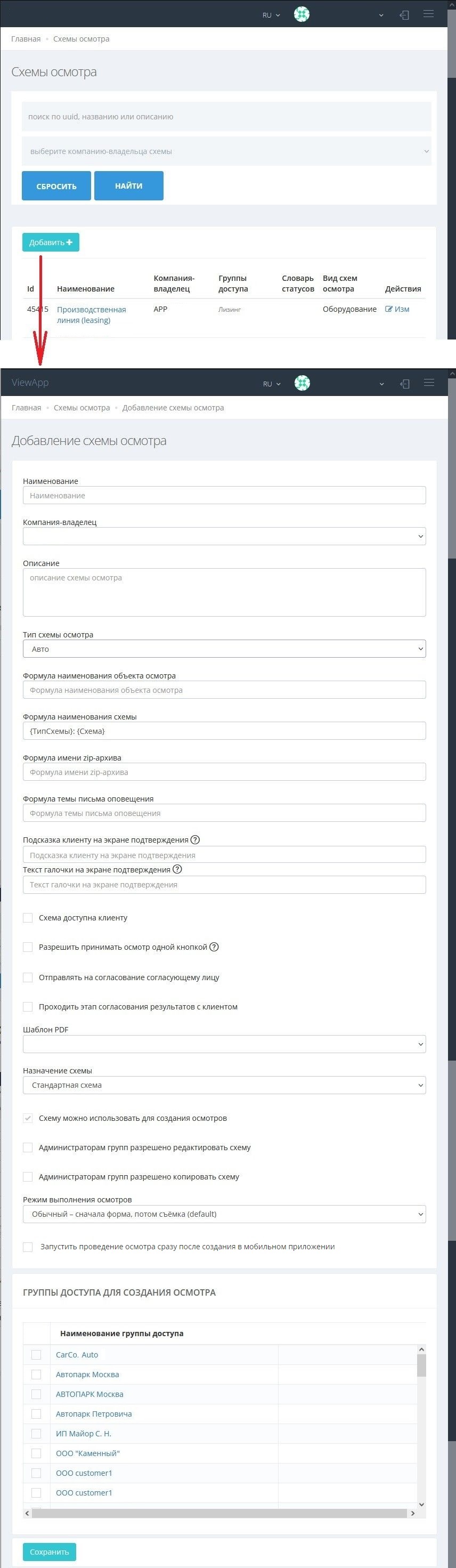Страница Схемы осмотра позволяет создавать и редактировать Схемы осмотров.