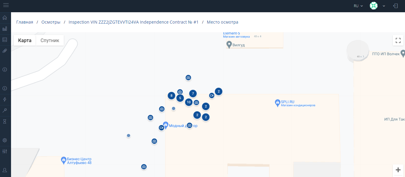 Координаты и (при доступности) адрес осмотра. Доступность изменения зависит от настроек схемы осмотра. |