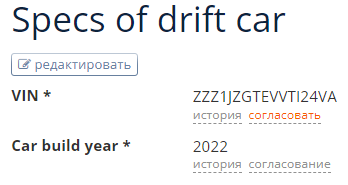 Поля можно отредактировать вручную (при доступности кнопки “редактировать”), а также посмотреть историю изменения поля.