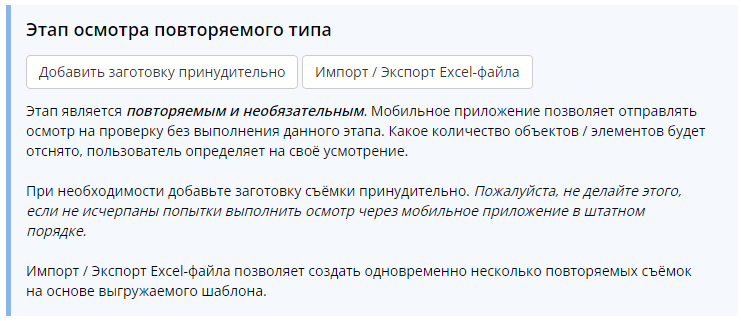 Название кнопки "Добавить заготовку принудительно" задаётся в настройке схемы осмотра "Кнопка визарда повторяемого процесса про добавление ещё одной цепочки ". Подробнее на странице Наполнение схемы осмотра.
