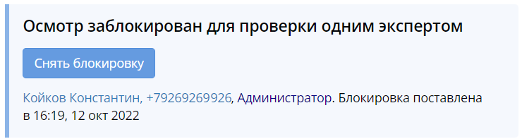 Эксперт будет дополнительно уведомлён о необходимости Блокировки, если проверка осмотра началась без её включения.