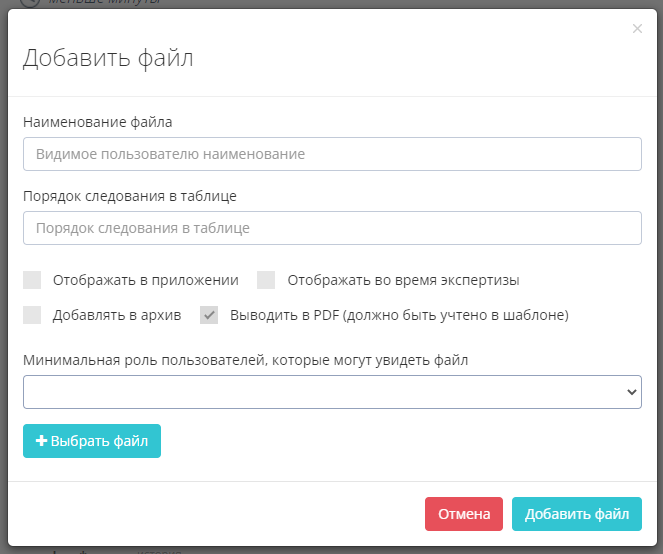 | Минимальная роль пользователя, которые могут увидеть файл | роль, которая позволяет увидеть файл в системе. |