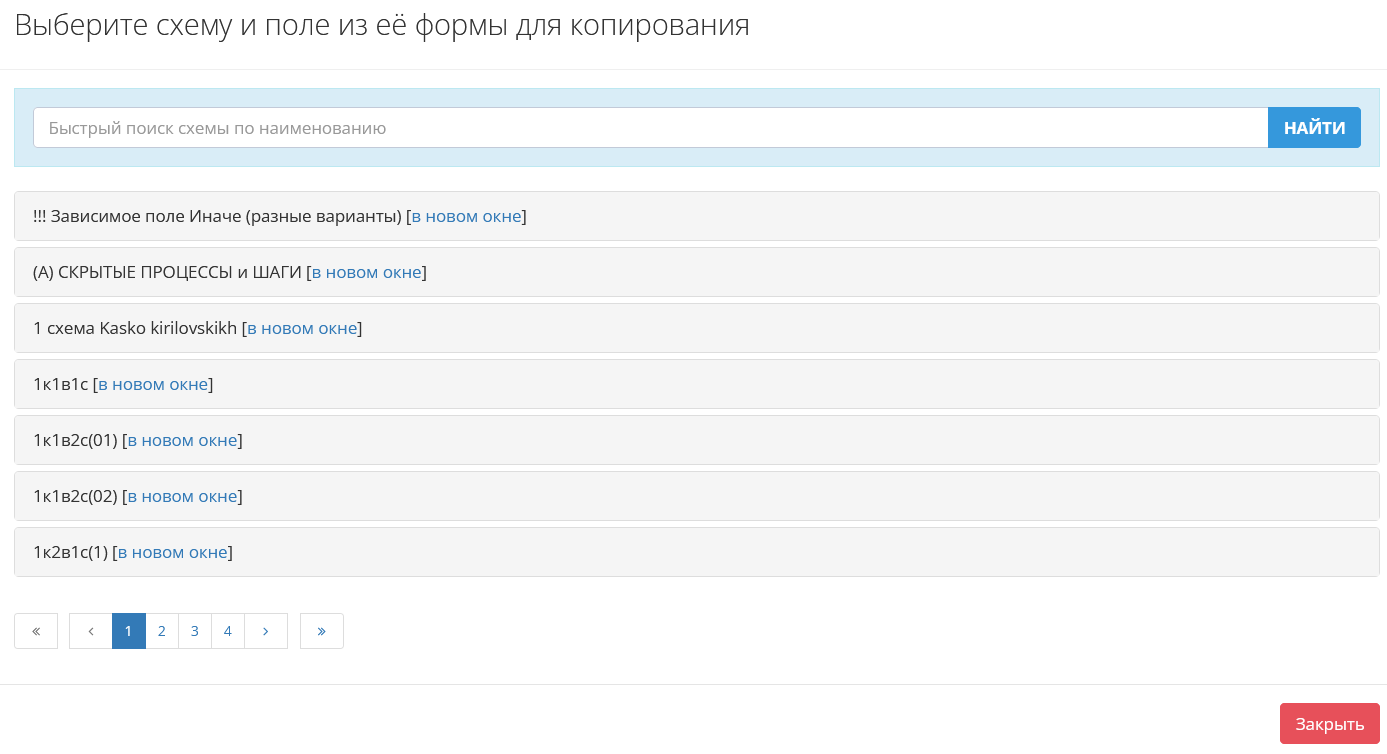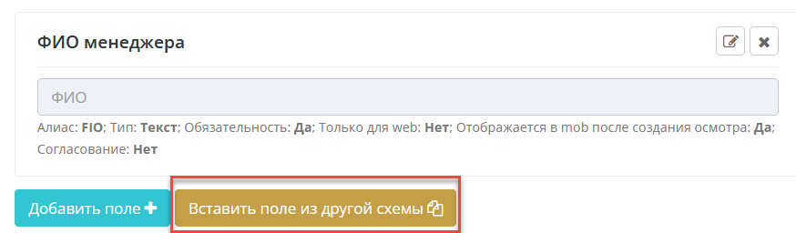 Система позволяет вставить поле из другой существующей схемы. Для этого необходимо нажать кнопку вставить поле из другой схемы.