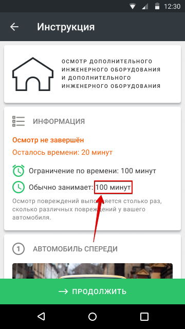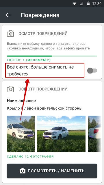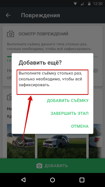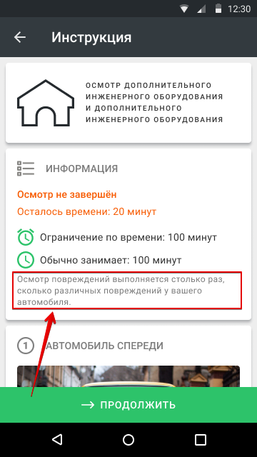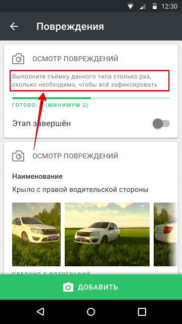 Неповторяемые этапы выполняются при осмотре один раз. Этап состоит из шагов осмотра, где пользователь видит инструкции и фотопримеры, как и что он должен зафиксировать на фото или видео (ракурсы съемки).