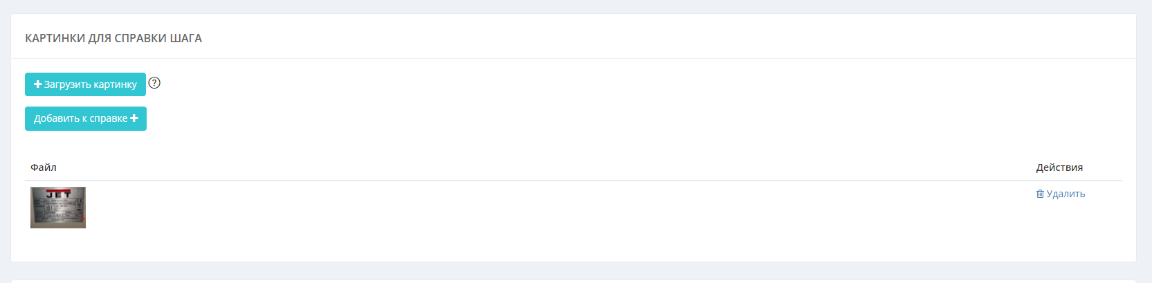 Для отображения картинки-подсказки при выполнении шага, необходимо воспользоваться формой “КАРТИНКИ ДЛЯ СПРАВКИ ШАГА” в Настройке Шага.