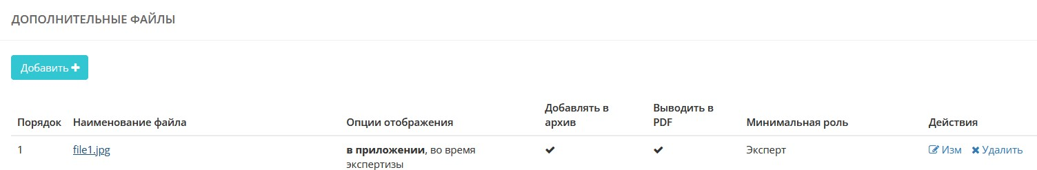 | Отображать во время экспертизы | При включении настройки файл будет доступен в осмотре, находящимся в состоянии “Экспертиза“ |