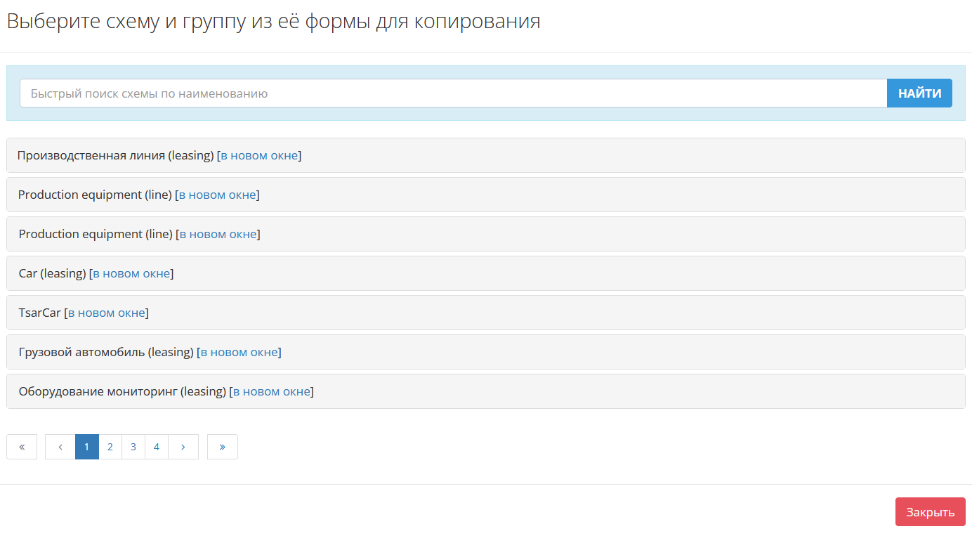 Мы можем найти необходимую схему, используя поиск, либо выбрать схему из списка. Для копирования группы в схемы нажимаем кнопку “Скопировать”.